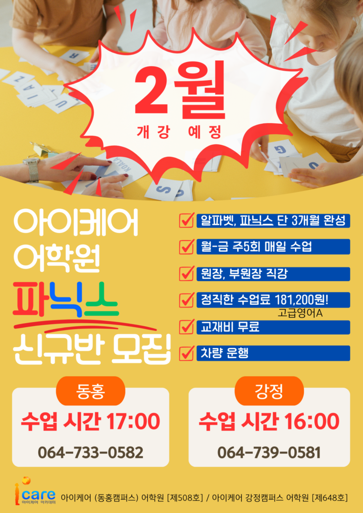 아이케어 강정캠퍼스 어학원 [학원등록번호 제648호] 사업자등록번호 640-94-00258